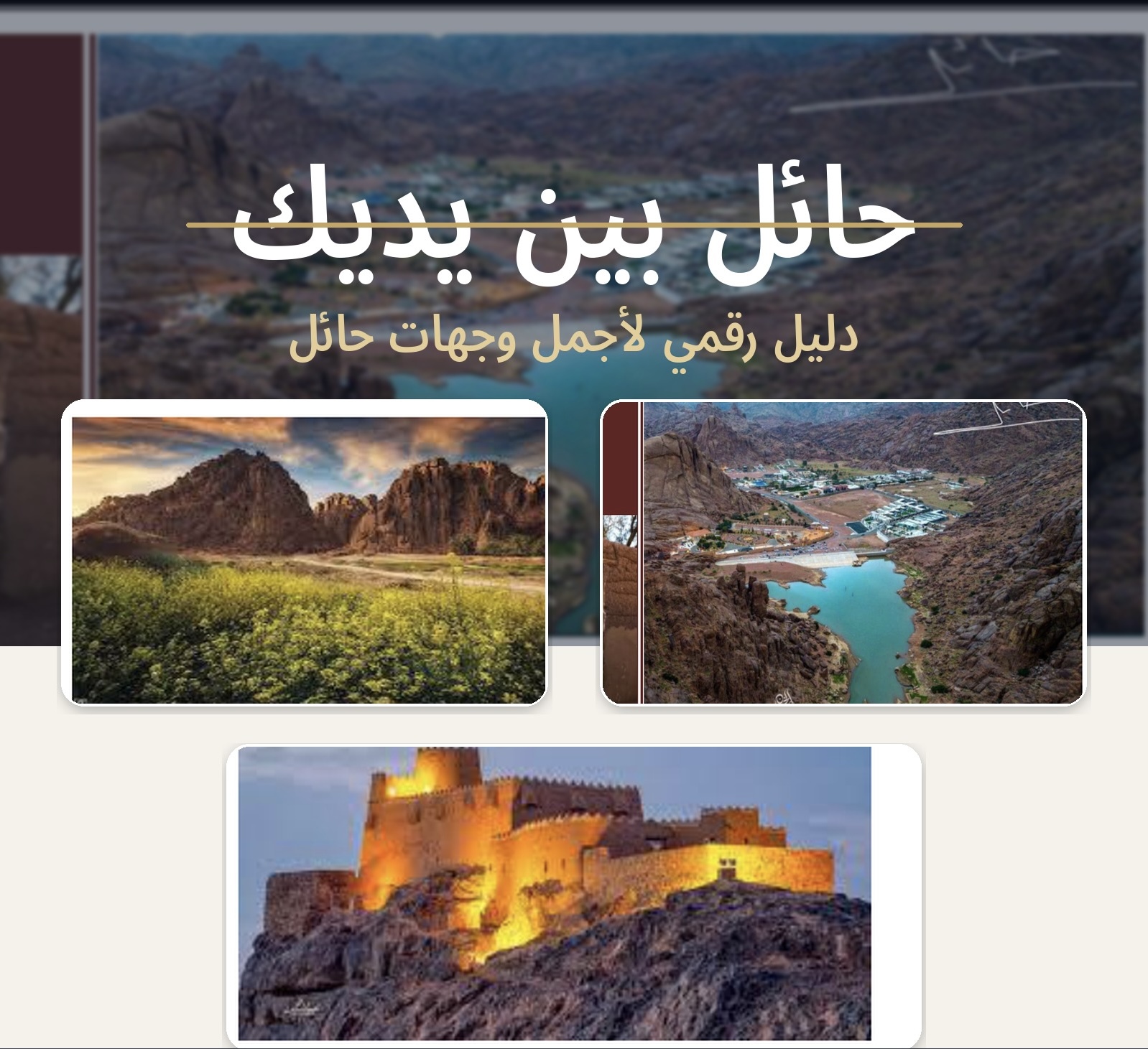 حائل بين يديك: دليلك الرقمي لاكتشاف أجمل وجهات حائل إذا كنت تبحث عن دليل رقمي يجمع لك جمال الطبيعة، وأصالة التاريخ، وروعة الأماكن السياحية